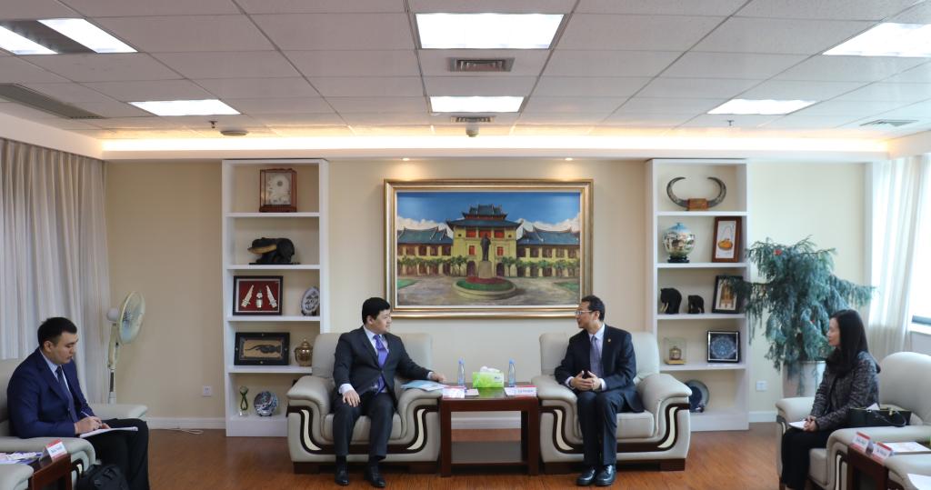 On December 9,Mr. Kyraubayev Zhoshykhan, the Consul General of the Consulate General of the Republic of Kazakhstan in Shanghai led a delegation to visit XMU. Vice Chairman of the University Council, Lai Hongkai received the guests.