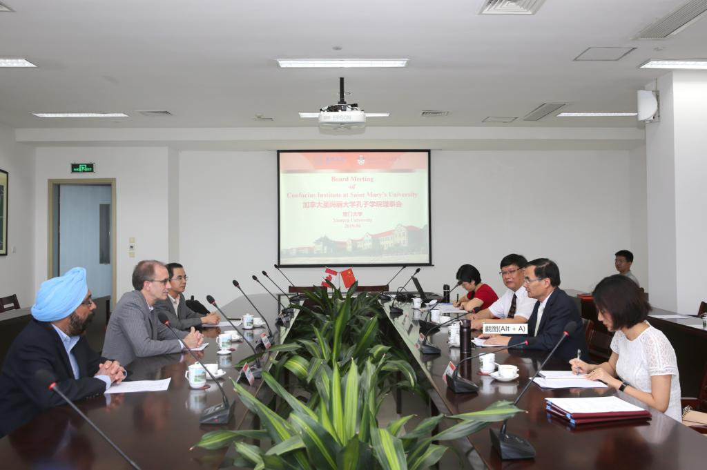 On June 27, Dr. Malcolm Butler, Vice President of Saint Mary's University (SMU) and Dr. Harjeet Bhabra, Dean of Sobey School of Business of SMU visited XMU and attended the annual council of the Confucius Institute of SMU.