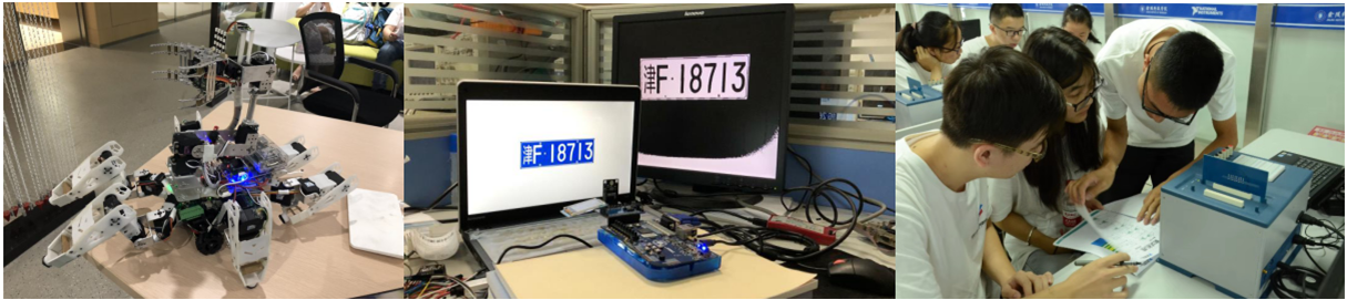 Team Tong Zhou Gong Ji Hua Shui completed their design by using different software such as Multisim and Ultiboard. Based on the ZY-3100 semiconductor test training platform and LabVIEW software framework, this project completed the design and test of chips' automated test solution, winning the first prize of the NI Cup. Team Miao Bu Ke Yan and Team Mian Bao Fan Mai Ji won the second prize of the ARM Cup and Innovation Practice Cup respectively.