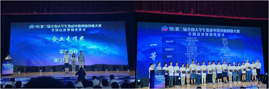 From August 19 to 21, 2019, the 3rd China College Integrate Circuit (IC) Competition, hosted by the Talent Center, Ministry of Industry and Information Technology, was successfully held in Nanjing Jiangbei New Area Industrial Technology Research & Innovation Park. The teams from Xiamen University (XMU), whose members were mainly from School of Electronic Science and Engineering (National Model Microelectronics College) (ESE), Xiamen University, won 3 first prizes, 2 second prizes and the Award of Great Organization, marking a historic breakthrough for XMU.