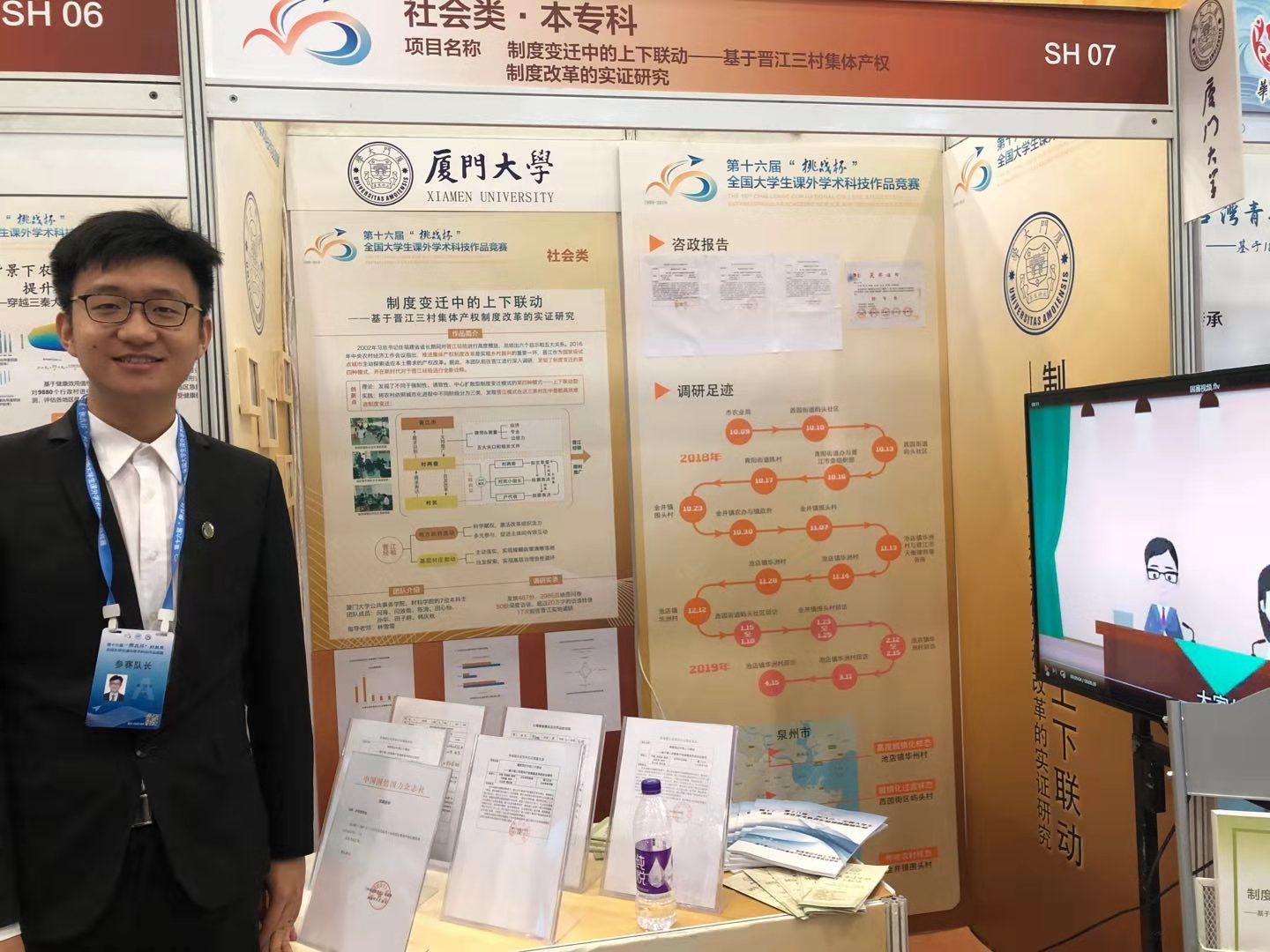"The Upper and Lower Linkage in Institutional Change-An Empirical Study Based on System Reform on Collective Property Rights in Three Villages in Jianjiang" instructed by Lin Xuefei, Associate Professor from the School of Public Affairs (SPA), Xiamen University, and led by undergraduate student Yan Hai won the second prize.