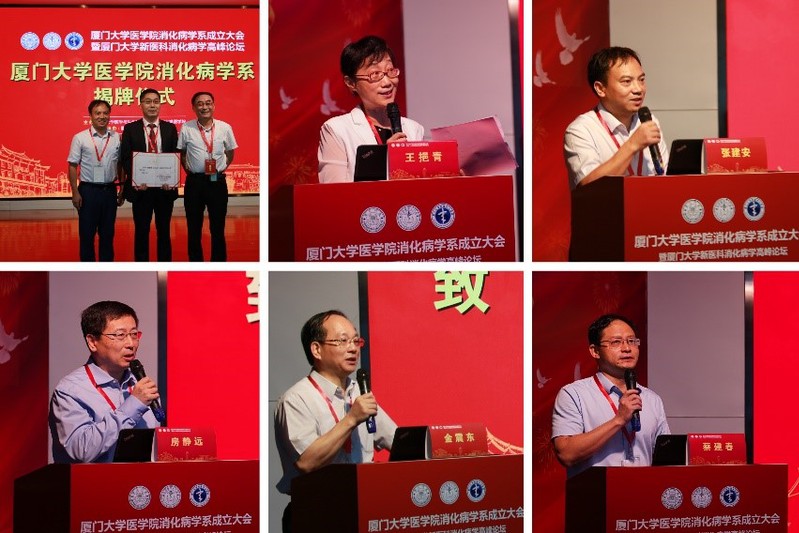 On July 10, the Inauguration Ceremony for the new integrated Department of Digestive Diseases, School of Medicine, Xiamen University and the Summit Forum of Gastroenterology of "New Medicine" were successfully held in the Affiliated Zhongshan Hospital, which marks that the school's comprehensive reform has achieved a new progress in its medical field, the reform of integrating medicine-related departments has made a substantial headway, and the interdisciplinary integration and collaboration of multiple clinical medical disciplines in the School of Medicine have stepped into a new era.