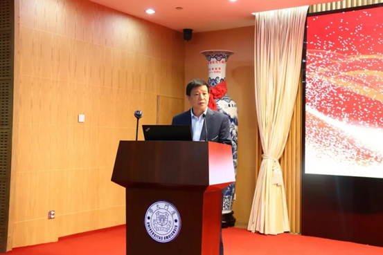Prof. Jiang Hongxin, Party secretary of Hunan Normal University, speaks at the inauguration ceremony