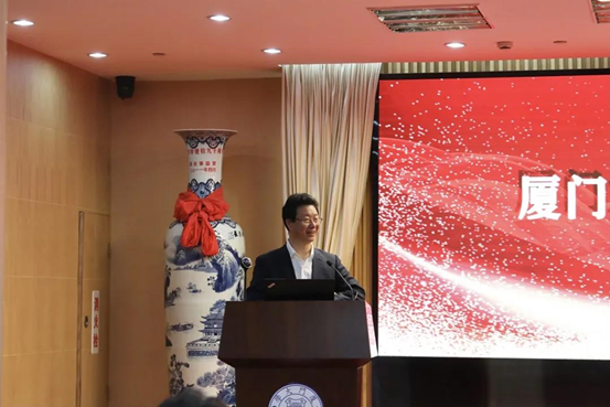 Lai Hongkai, XMU deputy Party secretary, speaks at CLTS's inauguration