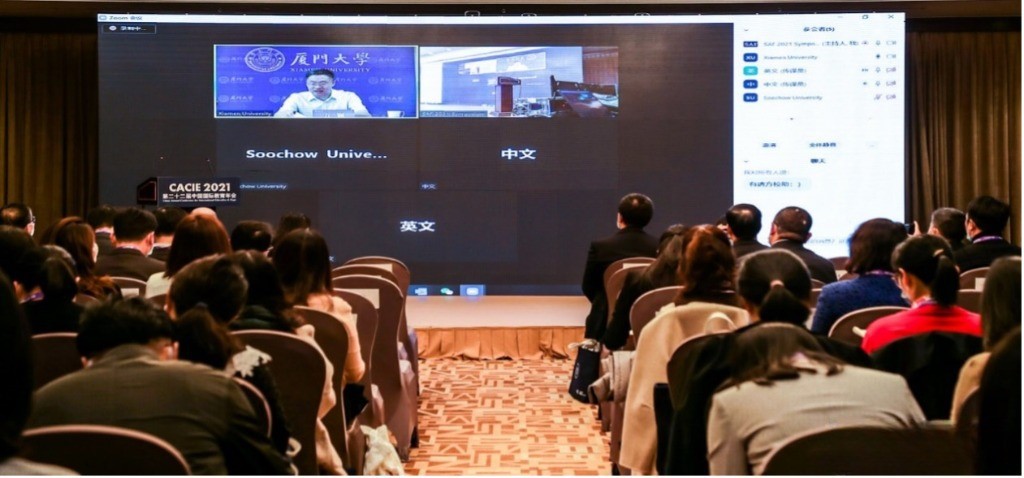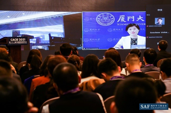 The 2021 China Annual Conference for International Education & Expo, under the theme of “New Opportunities and Prospects for Building an Open and High-Quality Education System”, took place from October 21 to 24 in Beijing. The Parallel Forum “New Strategies for University Internationalization Initiatives in the Post-Pandemic Era” organized by Xiamen University was successfully held on October 21 in a hybrid model. The forum attracted over 160 attendees from domestic and overseas universities to discuss how Chinese universities could continue their internationalization under restricted conditions in the post-pandemic era. Guests from home and abroad shared typical cases of promoting international exchange and cooperation during COVID-19 pandemic and discussed practicable measures to implement the strategy of internationalization.