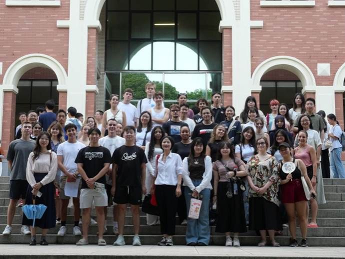 指导活动结束后,两校区工作人员与志愿者分别带领同学们参观校园,让交流生实地熟悉生活服务区域与标志性地点。