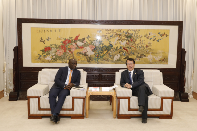5月11日,加纳驻华大使Edward Akwasi Boateng率加纳中央大学名誉校长Mensa Otabil一行来访我校,副校长邬大光会见来宾,法学院副院长朱晓勤、王亚南经济研究院副院长周颖刚、财务管理与会计研究院副院长胡金帅、化学化工学院副院长李军以及医学院代理副院长钱林超参加座谈交流。