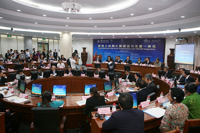 此次论坛以“新海上丝绸之路建设与东盟一体化”为主题,分两个阶段进行。主旨演讲阶段由市外侨办李啸萍主任主持,厦门大学朱崇实校长、厦门市倪超副市长先后致辞,外交部亚洲事务特使孙国祥、中国-东盟中心秘书长杨秀萍、柬埔寨文化艺术部副部长斯里宋、泰国普吉府府尹卡梅隆·迪帕亚蓬塔达分别进行主旨演讲。学术研讨阶段由厦门大学南洋研究院前院长庄国土教授、郑州大学越南研究所所长于向东教授主持,来自东盟10国的11位学者围绕教育人文交流与互信、基础设施建设与互联互通、加强青年交流与合作等分议题展开论文研讨,并进行互动交流,探讨未来合作共赢的发展方向。