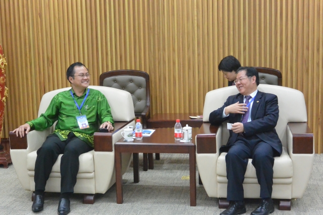 4月23日下午,校长朱崇实在科艺中心三楼会议室会见来厦参加2016南洋论坛的马来西亚驻广州总领馆总领事Muzambli Bin Markam一行。