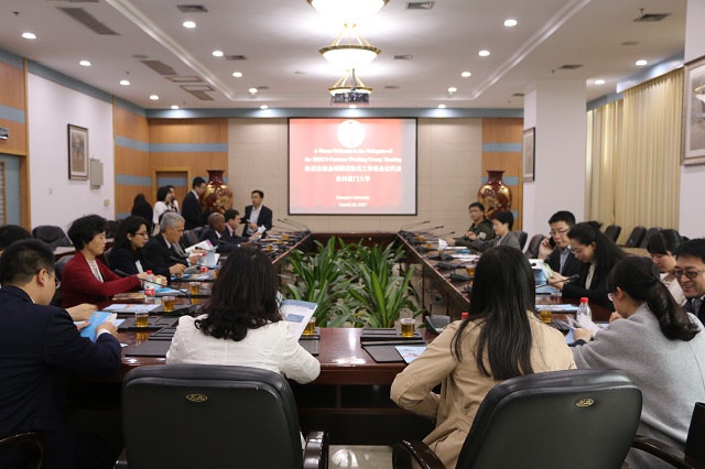 3月30日下午,金砖国家海关工作组会议代表团一行28人对我校进行友好访问。代表团人员包括巴西、印度、俄罗斯、南非四国负责海关事务的高级官员,中国海关总署国际合作司副司长黎明以及福州海关和厦门海关部分官员。