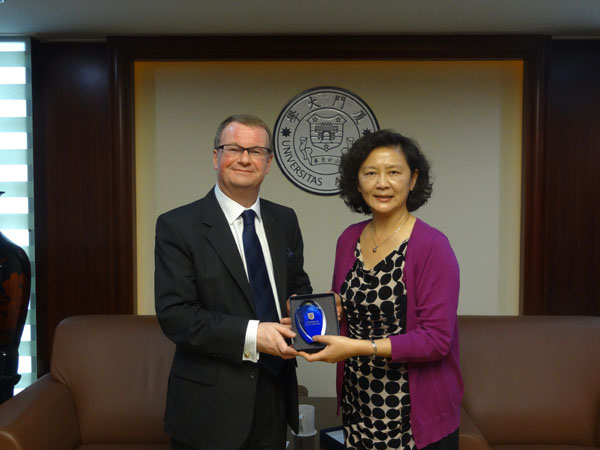 南澳大学副校长Nigel Relph此次来访,主要是与我校探讨开展校际合作交流的可能性,并探讨为两校学生提供海外学习机会和奖学金等事宜。会谈中,詹心丽副校长向客人介绍了我校英文授课情况,并与Nigel Relph副校长就如何推动双边学生流动问题进行了深入探讨。双方希望两校以商学院的合作为切入点,尽快开展学生长短期交流、拓展学术合作。