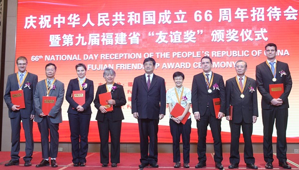 由福建省人民政府主办、福建省人民政府外事办公室承办的庆祝中华人民共和国成立66周年招待会暨第九届福建省"友谊奖"颁奖仪式于9月29日在福州举办。福建省副省长郑晓松出席活动致辞,并为第九届"福建省友谊奖"获得者颁奖。我校两位外籍教师荣获该奖项。