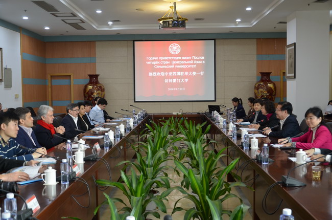 各位大使感谢厦门大学的接待,对学校关注关心中亚国家留学生的成长表示感谢。他们说,中国国家主席习近平去年9月访问中亚时提出了建设“丝绸之路经济带”的新概念,同时表示,将在未来10年向上海合作组织成员国提供3万个政府奖学金名额,拟邀请1万名孔子学院师生赴华研修。在这个大背景下,希望并相信能有更多的中亚年轻人来华进修,有更多的来华留学的中亚青年成为中亚五国与中国的“友谊使者”。