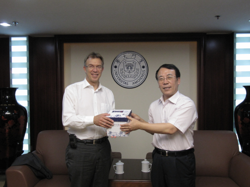此次与Martin Kropff副校长同行的还有该校负责农业技术和食品科学专业的Raoul Bin教授及负责产品设计和质量管理的Tiny van Boekel教授。邬大光副校长代表学校欢迎了Martin Kropff副校长一行。双方回顾了两校过去几年的友好合作,并对今后的合作提出了设想,希望在今后几年里能在学生交流和联合培养方面探讨新的合作可能性。