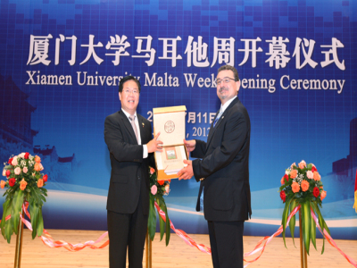 7月11日上午,厦门大学"马耳他周"在科学艺术中心拉开帷幕。马耳他驻华大使Joseph Cassar、前任中国驻马耳他大使张克远及夫人张淑凤女士、中马友协主席Reno Calleja,马耳他大学校长Juanito Camilleri率领的代表团一行、我校校长朱崇实及学校有关部门和学院师生参加了开幕式。