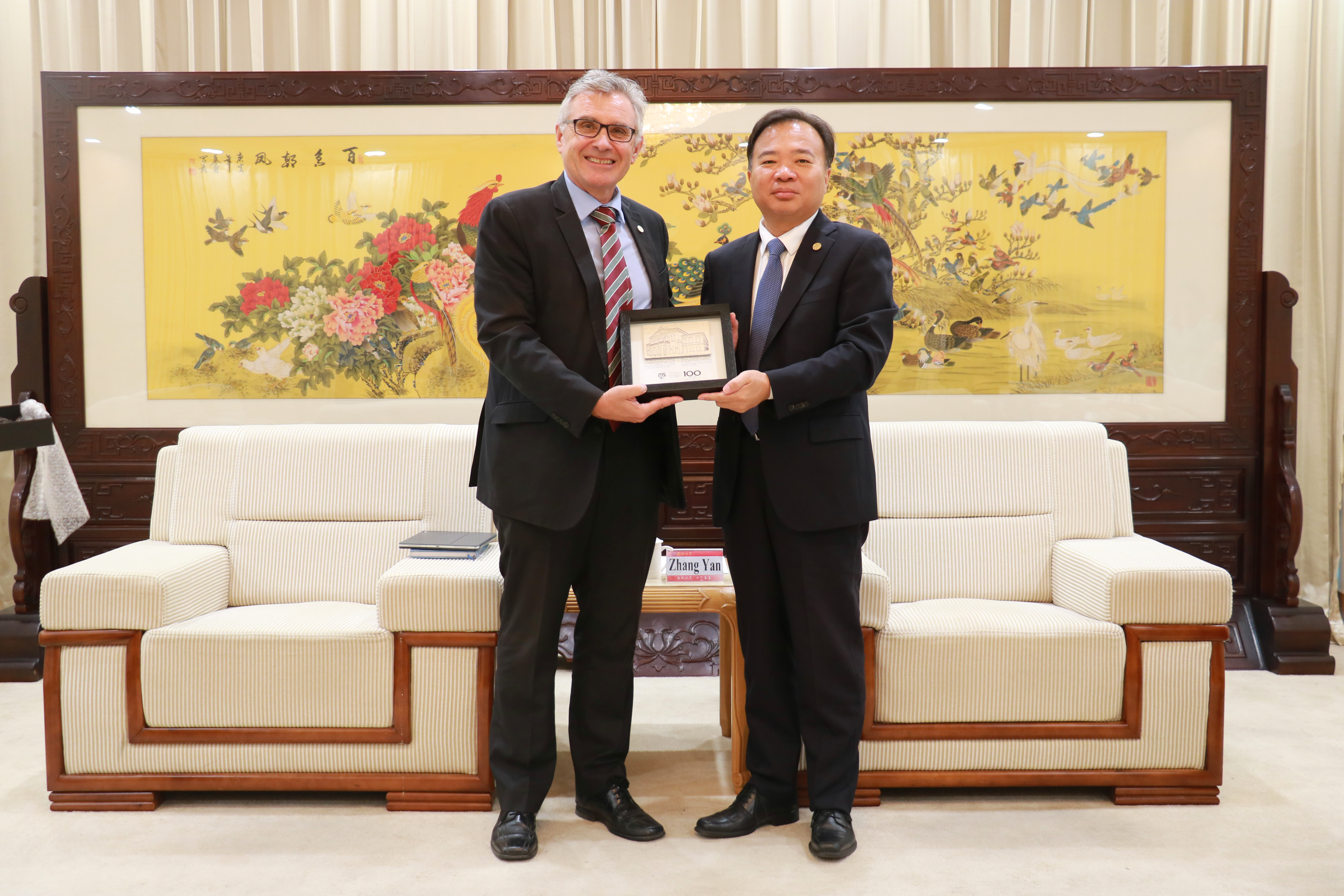 10月15日上午,南非斯坦陵布什大学校长Wim de Villiers、副校长Hester Klopper来访我校,校党委书记张彦、校长张荣分别会见客人,双方就如何加强国际化办学和进一步促进两校的交流合作,进行了深入探讨。