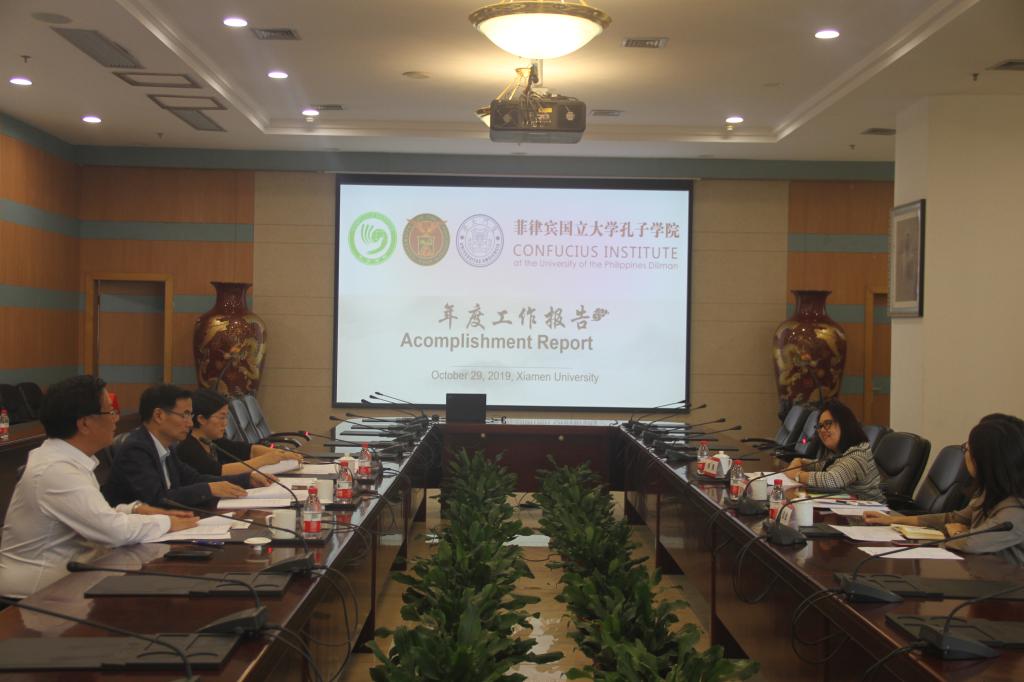 访校期间,陈万杰一行还参加了孔子学院理事会,我校副校长杨斌出席会议并致辞,与会双方就继续深化拓展孔子学院功能,充分发挥孔子学院的桥梁纽带作用,深入推进两校间的师生交流与学科合作达成一致意见。杨斌指出未来合作双方应以“厦门大学汉语国际推广工作提升计划”(简称“汉推十条”)为指导,促进菲律宾大学孔子学院可持续发展。