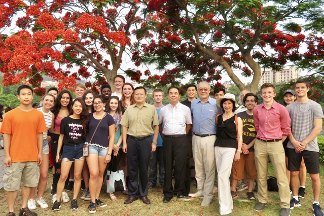 邬大光与来宾就中美留学生互动交流等问题进行了深入的交流,并在鼓励学生创新创业、激励跨学科融合等方面达成共识。 来访团一行参观了我校思明校区和翔安校区,全面了解了厦门大学的办学情况,并与在我校交流的美国学生合影留念。张钟浚对厦大优美的校园环境、完备的校园设施表示赞叹,对厦大近年来取得的成绩表示赞赏。