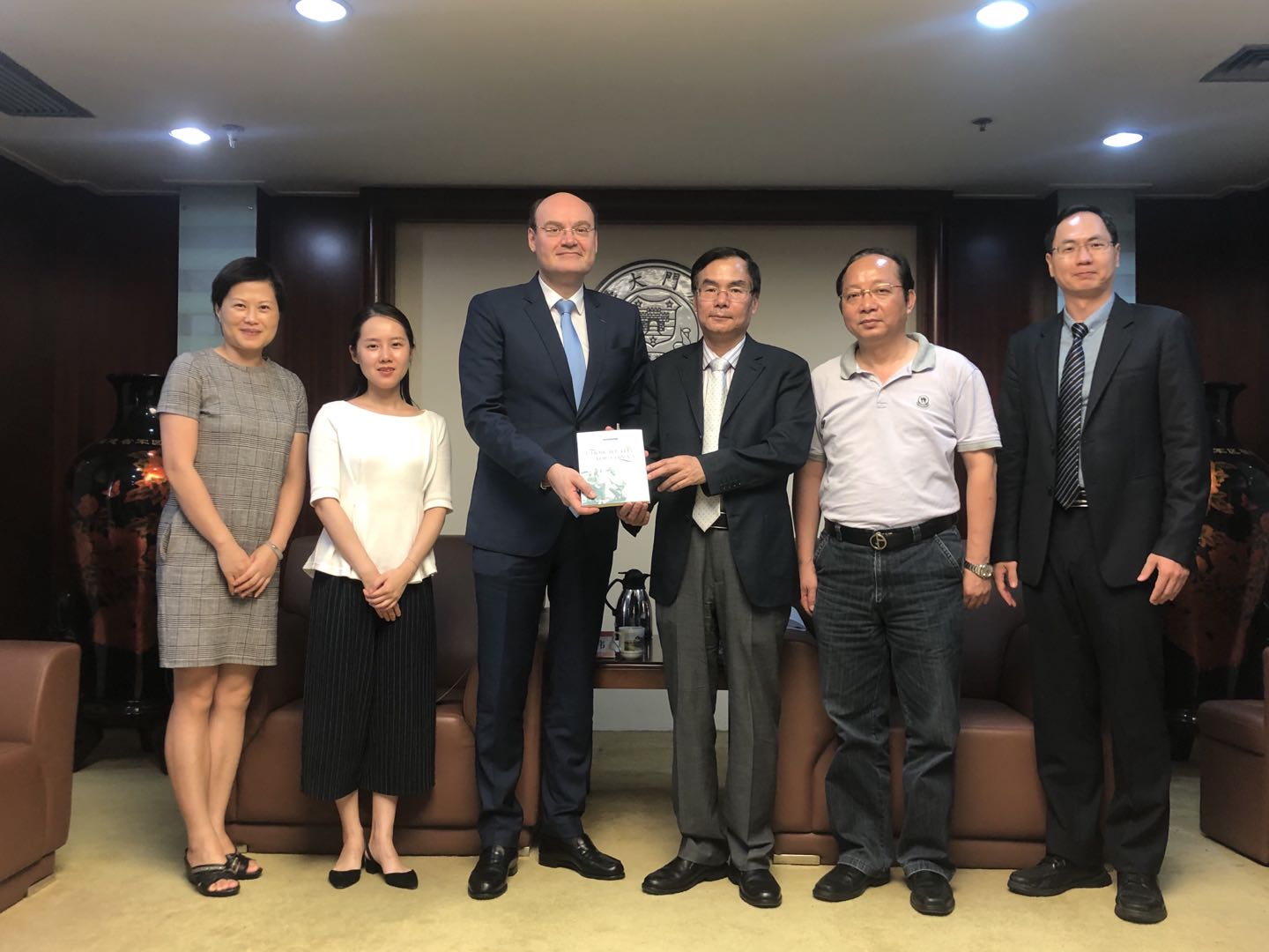 6月30日下午,法国籍国际关系专家、中欧论坛创始人高大伟(David Gosset)一行来访我校,副校长杨斌会见来宾。厦门大学“一带一路”研究院常务副院长陈武元、管理学院常务副院长吴超鹏、国际合作与交流处副处长余宏波参加会面。