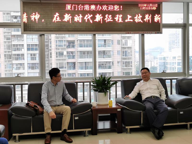 为进一步促进交流、加强校地合作,10月15日下午,我办蔡舜主任一行拜访厦门市台港澳办,市台港澳办主任刘金柱热情接待拜访团。
