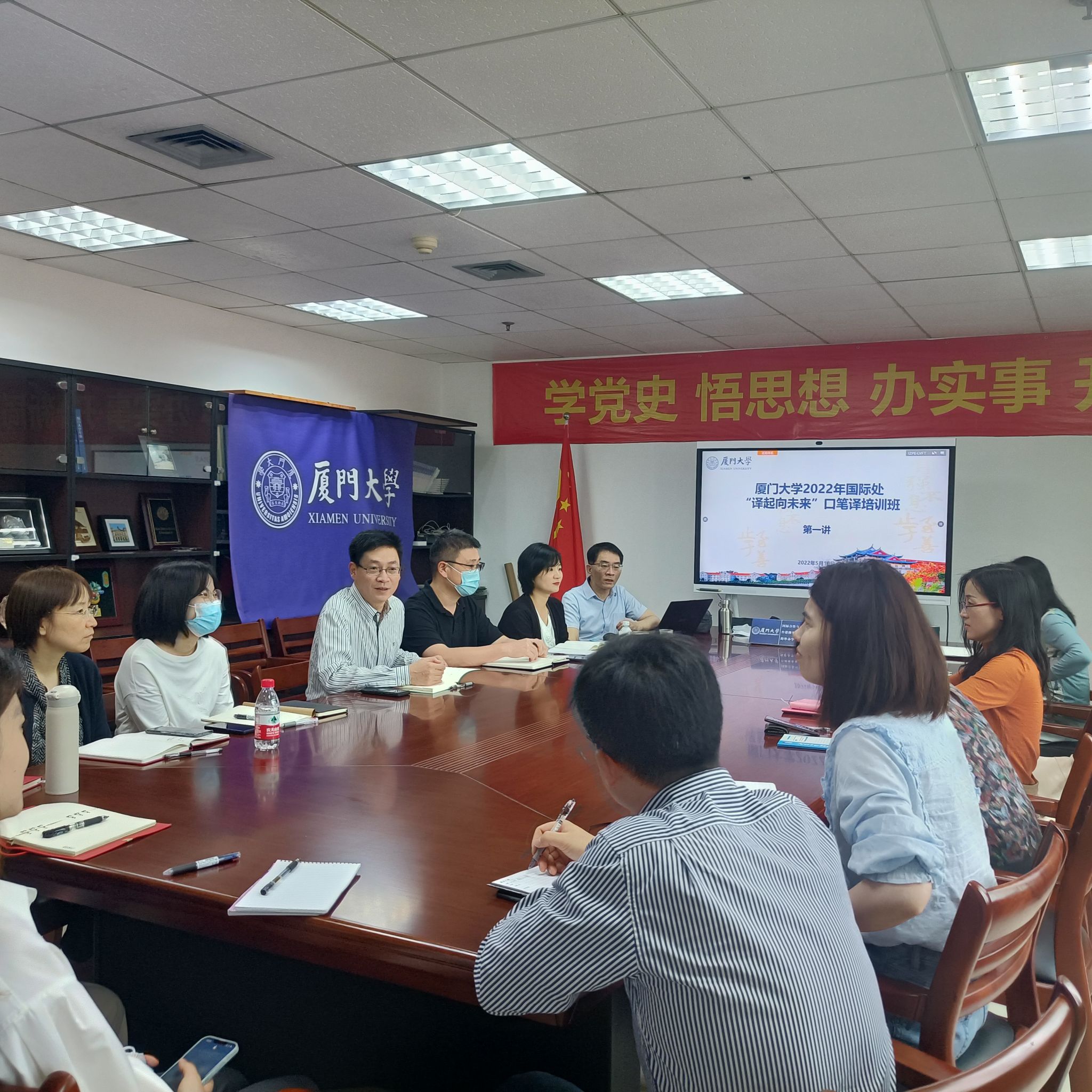 为认真学习贯彻习近平总书记致厦门大学建校100周年贺信和致潘维廉教授回信精神,帮助外籍教师深入了解中国,提升引智水平以助力学校“双一流”建设,国际处精心筹办“译起向未来”的口笔译培训班,于5月10日正式开讲。国际处处长蔡舜出席活动并致辞,国际处全体成员参加。