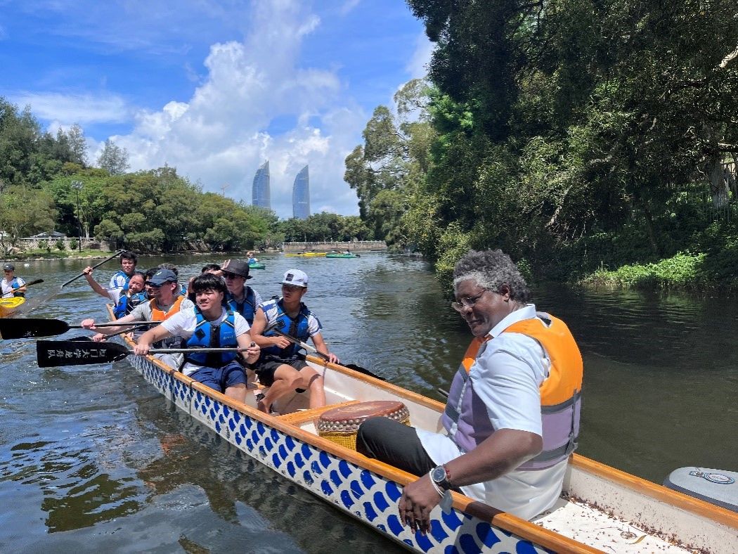 夏风拂,端午至,龙舟起,共安康。5月29日上午,外籍教职工齐聚思源谷,在舟艇协会志愿者们的指导下认真学习掌舵、挥浆和敲鼓。随后龙舟下水,他们乘风逐浪、奋楫击水,外籍教师们激情澎湃的口号,整齐划一的动作拉开此次端午系列体验活动的序幕。