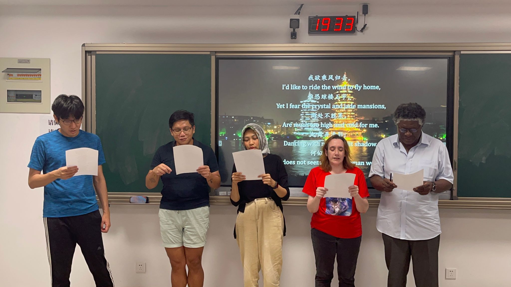 6月14日,由国际处举办的2022春季学期外籍教职工零基础汉语口语培训班圆满结束。最后一节课在老师和学员们的歌声中拉开序幕,大家一起演唱《但愿人长久》,感受着“但愿人长久,千里共婵娟”中对远方亲人的思念之情以及美好祝愿。
