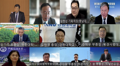 第十三届“中韩大学校长论坛”由韩国国立全北大学承办,中国驻韩国大使邢海明、全罗北道知事金宽永、韩国教育部次官张商允,以及中国21所高校、韩国26所高校以线上形式参加,围绕“为推进后疫情时代下的高等教育发展,中韩大学间的合作方案”和“第四次工业革命时代背景下大学教育创新的方向与课题”两个主题探讨交流。此次活动旨在推进中韩两国的高等教育发展,并促进两国大学间的交流与合作,为中韩大学共同培育更多国际型人才出谋划策。