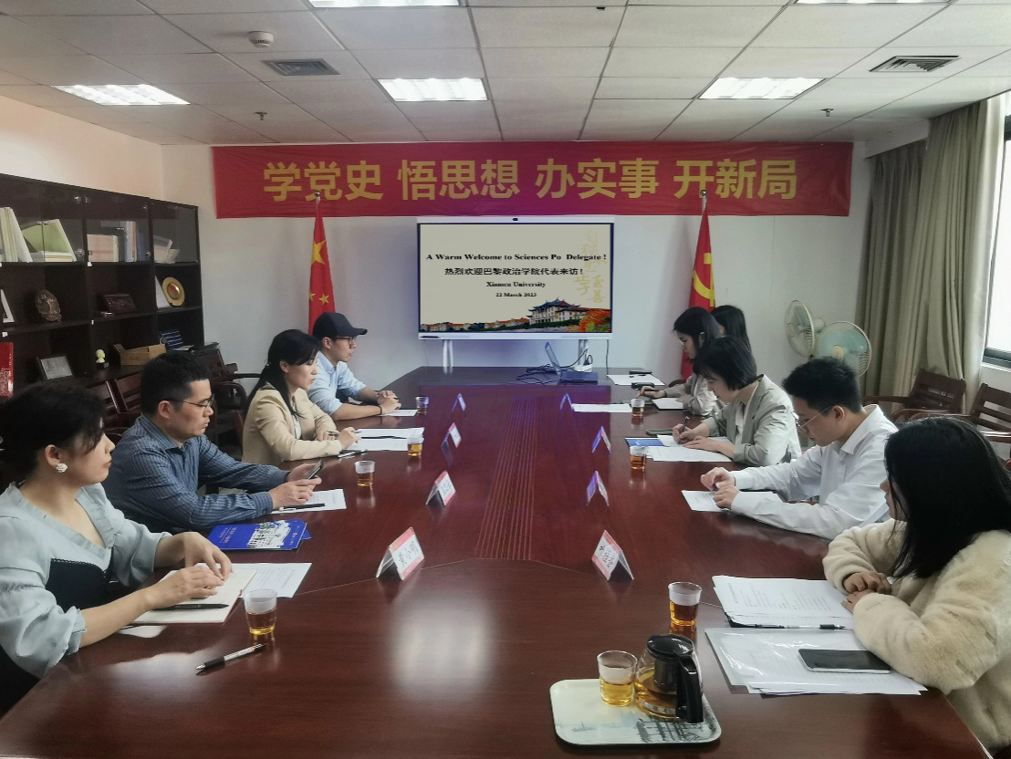 3月22日,巴黎政治学院驻华办公室负责人刘华胤来访。国际处副处长刘婉玉、管理学院国际发展与国际认证办公室主任王志强、外文学院法语语言文学系副主任沈澍、经济学院外事秘书叶桂香等接待来宾。