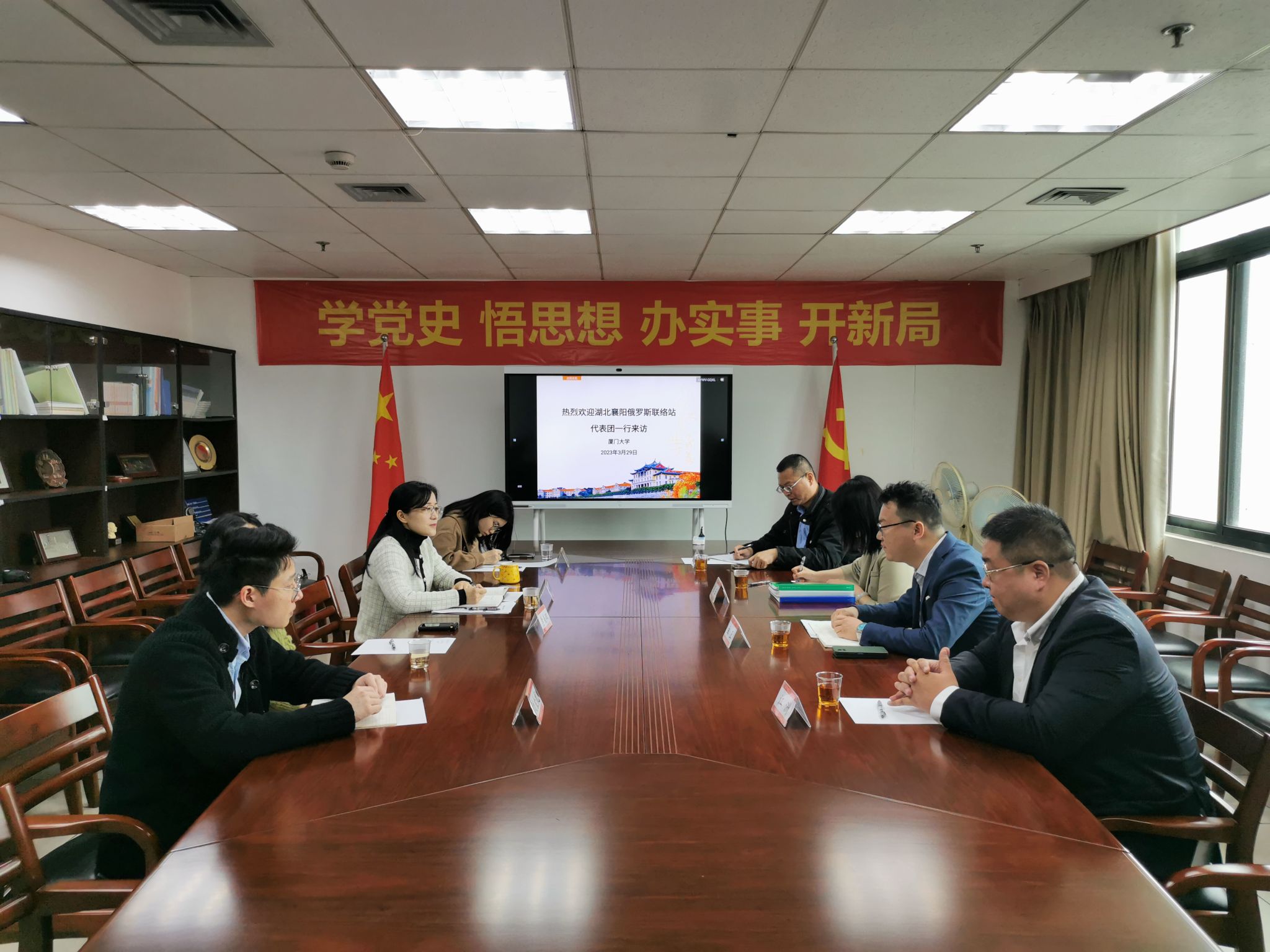 3 月 29 日,襄阳市侨联海外(俄罗斯)工作联络站负责人曲正一行来访我校。厦门市金砖办副主任李铭、厦门大学国际处副处长刘婉玉等参加座谈。