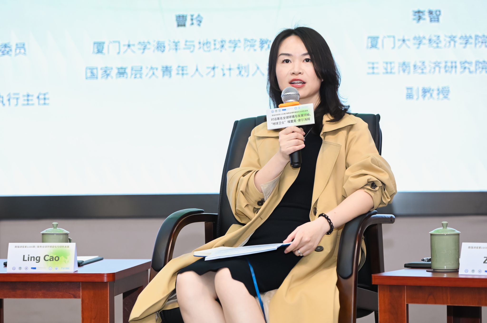 在南强讲座的第二部分,索尔海姆与戴民汉、吕永龙、以及来自海洋与地球学院的曹玲教授、经济学院/王亚南经济研究院的李智副教授共同进行高端对话。嘉宾们围绕科技创新对应对环境挑战并推进可持续发展的贡献、“一带一路”倡议对全球生态环境可持续发展的影响、后疫情时代的经济恢复与绿色发展、青年人才如何参与全球绿色与可持续发展等若干话题开展了全面深入的讨论。