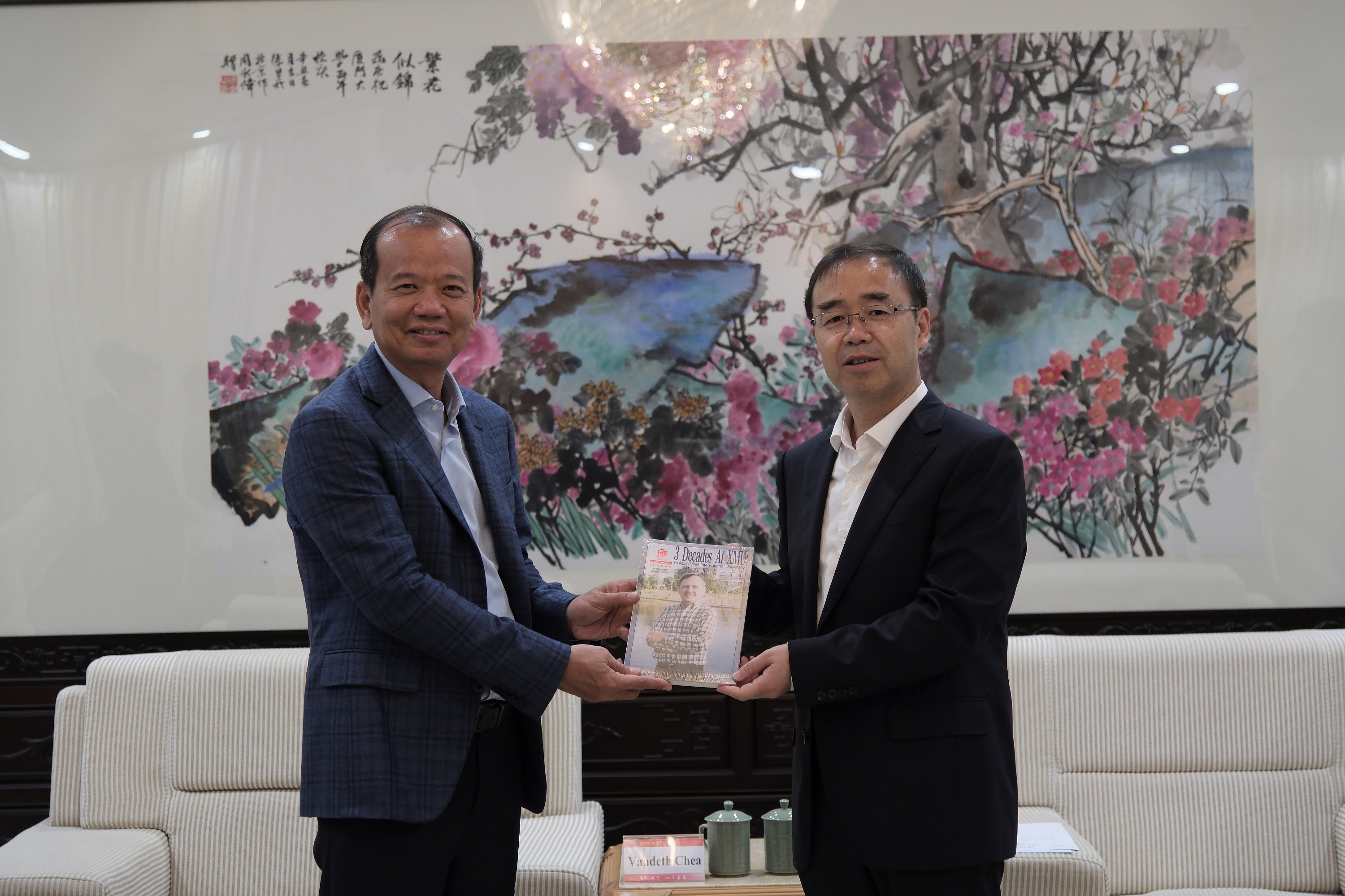 张宗益对谢万迪的首次来访表示欢迎。他介绍了厦门大学的办学历史、发展历程和办学特色,同时介绍了厦门大学与柬埔寨高校的合作交流情况。他表示,我校高度重视与东南亚国家的交流与合作,希望与柬埔寨在教育、文化、产学研用等方面进行更广泛的合作。