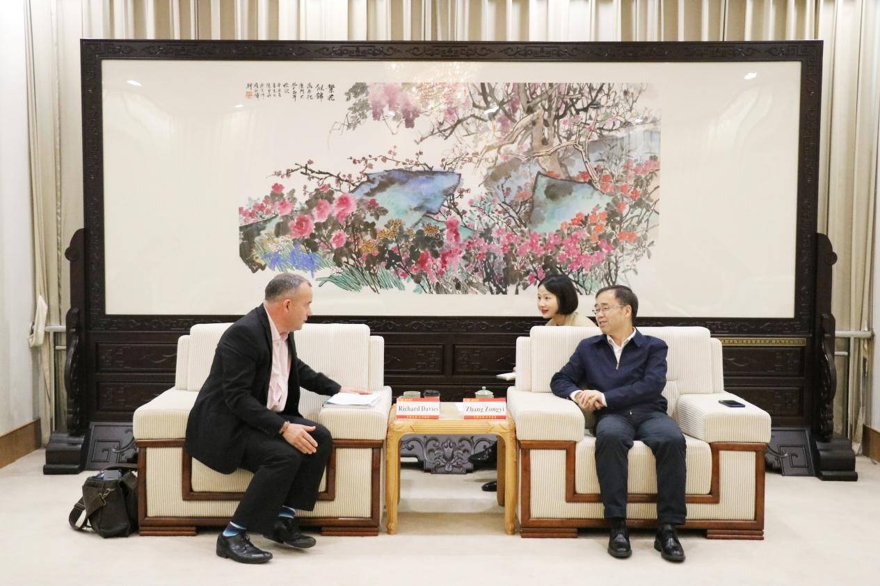 张宗益首先对 Richard Davies 的来访表示欢迎。他高度评价了两校在共建孔院、科研交流、师生互访方面所取得的成绩,并希望进一步推动两校实质性交流项目落地,在人才培养、科研合作方面实现领域、学院、专业的对接合作。