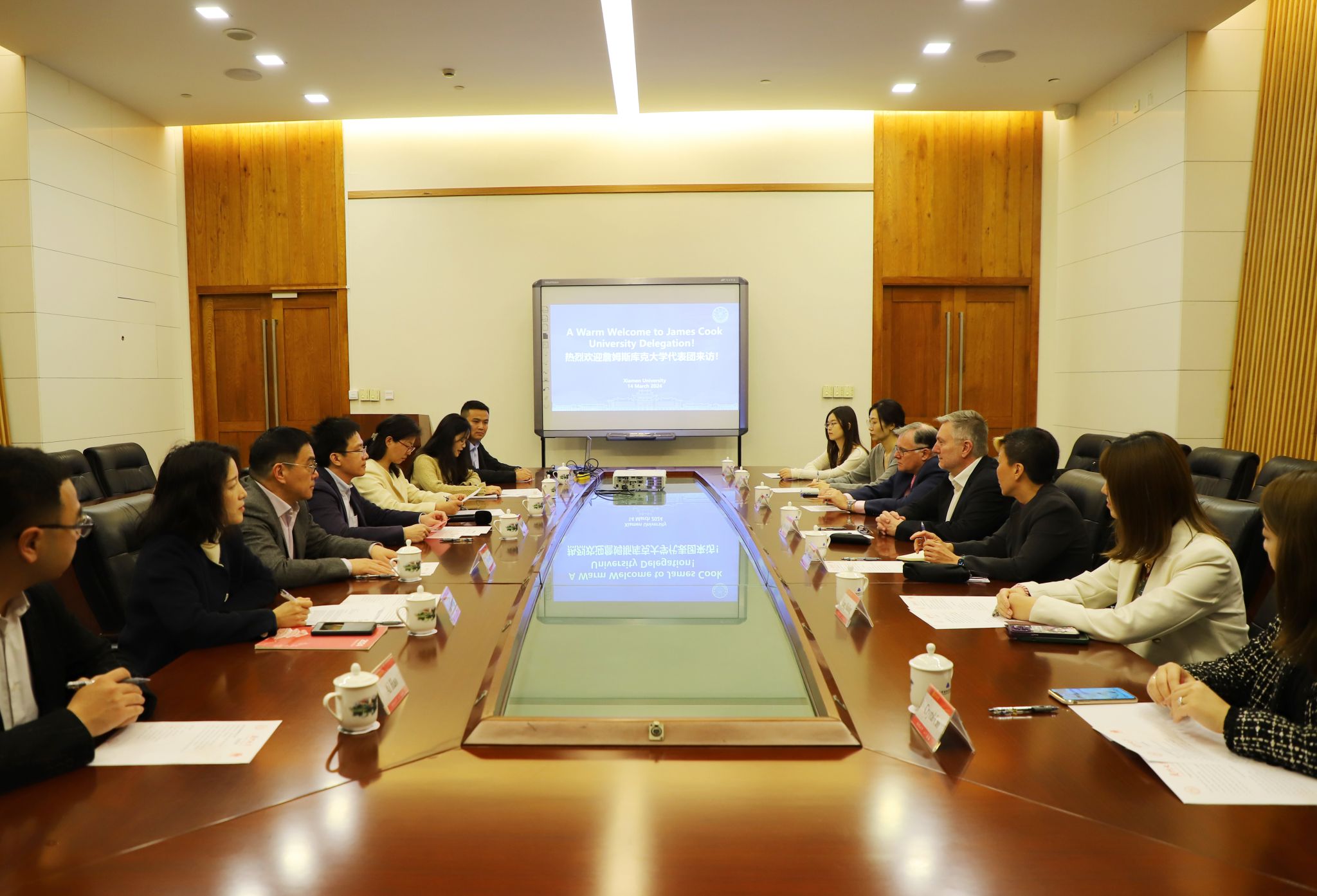 3月14日,澳大利亚詹姆斯·库克大学常务副校长兼新加坡校区校长斯蒂芬·博伊尔(Stephen Boyle)一行来访我校,副校长史大林会见来宾。