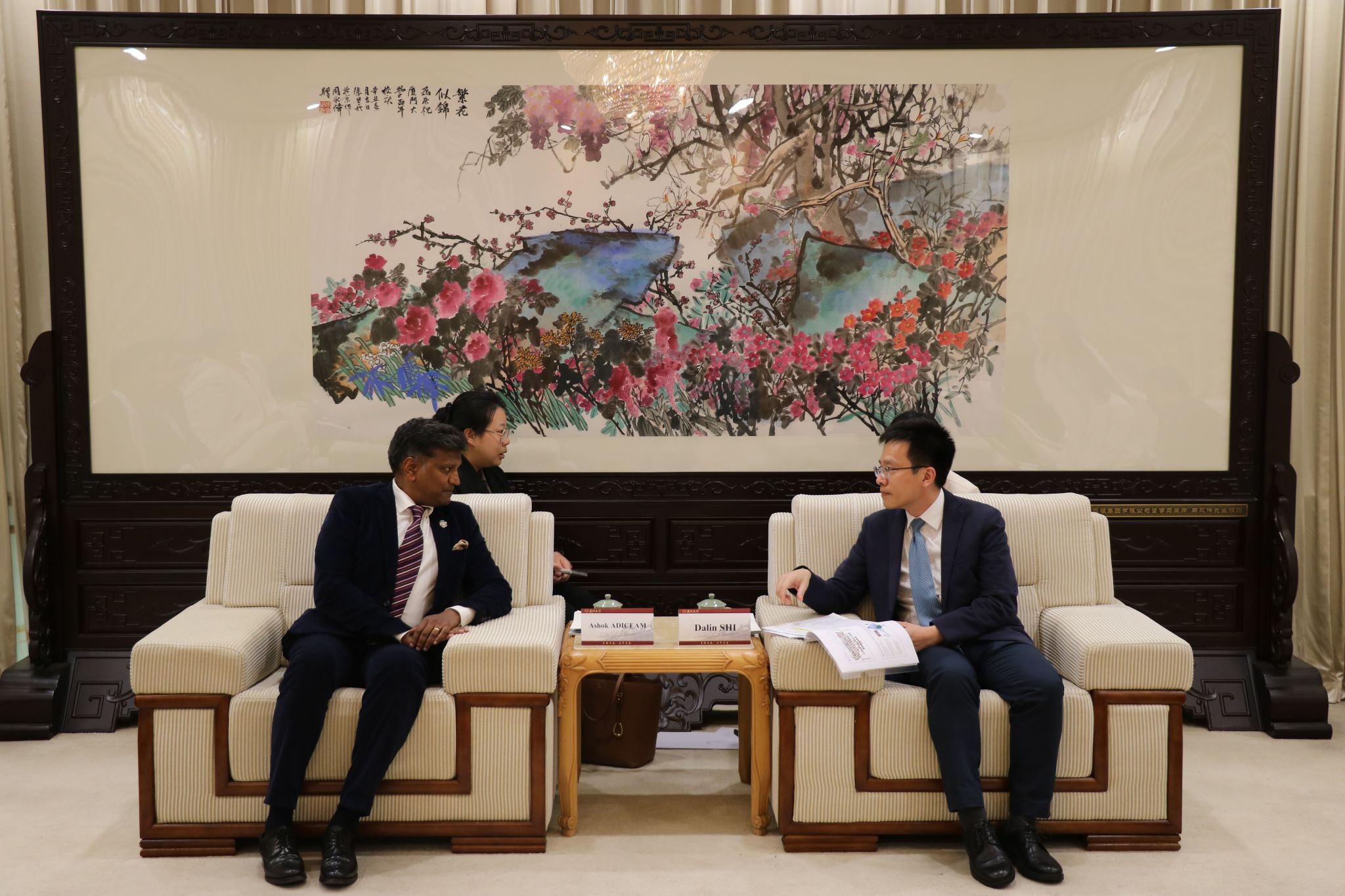 3月28日,法国总统联合国海洋大会副特使阿绍克·阿迪塞阿姆(Ashok ADICEAM)一行来访我校,副校长史大林会见来宾。