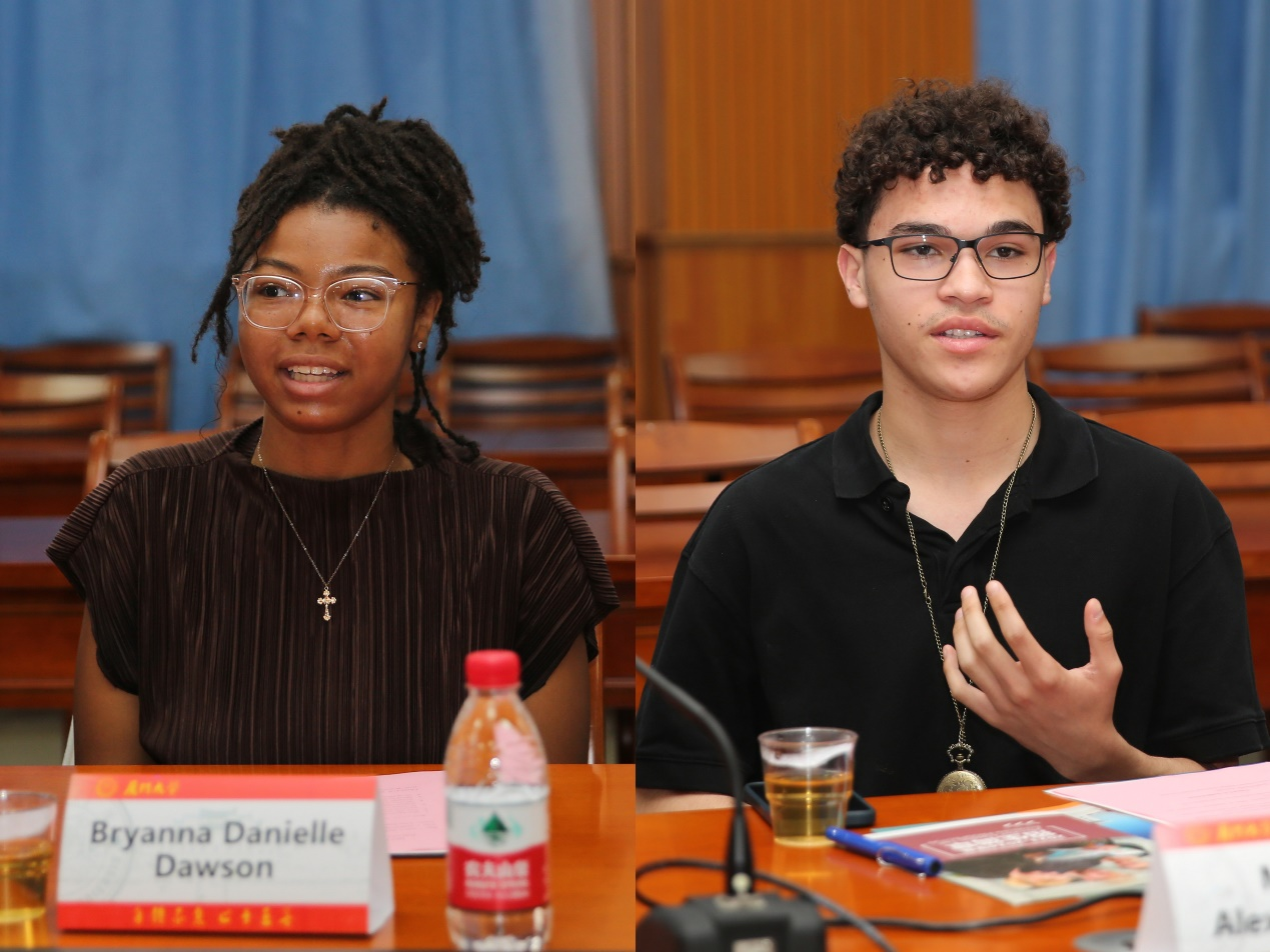 特拉华州立大学学生代表布里安娜·多森(Bryanna Dawson)和马修·里特(Matthew Little)分别发言。布里安娜·多森非常感谢国际中文教育学院提供此次交流机会,她期待通过此次来华活动提高中文水平,体验中国多彩文化。马修·里特表示希望能与中国青少年有更多的沟通、交流,了解彼此的文化和生活,收获友谊。