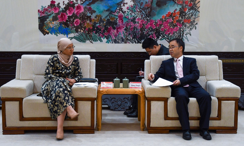 张宗益对苏莱雅一行到访表示欢迎。他介绍了厦门大学的总体办学情况及与东南亚地区的历史渊源、交流合作情况,强调厦门大学重视学生的国际化培养,着力提升国际化水平,并表示希望未来进一步深化与马来西亚的交流合作。