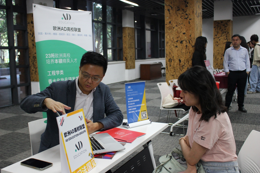 随后,代表团组织教育展活动,我校师生与法国高校代表进行了面对面交流,并就学术交流、课程设置、奖学金申请等实用信息进行交流。法国高校代表向师生们进行了详细的介绍和说明,进一步激发了我校师生对国际教育交流的浓厚兴趣与向往。