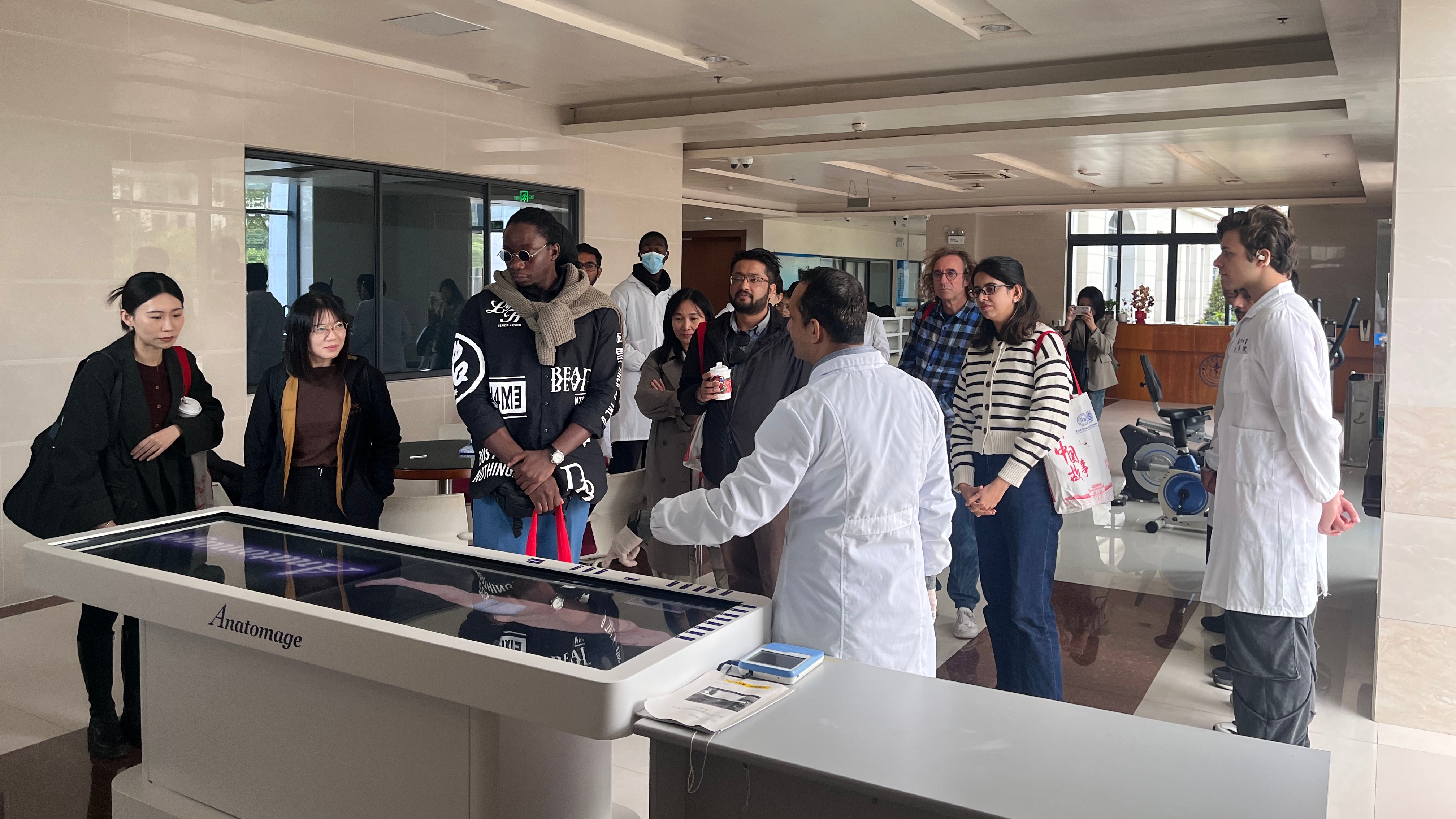 座谈会结束后,与会人员前往医学院进行参观,Gyanendra Swar老师向大家介绍了学院的历史、实验室和他所教授的课程,并与该院国际学生进行简单交流。
