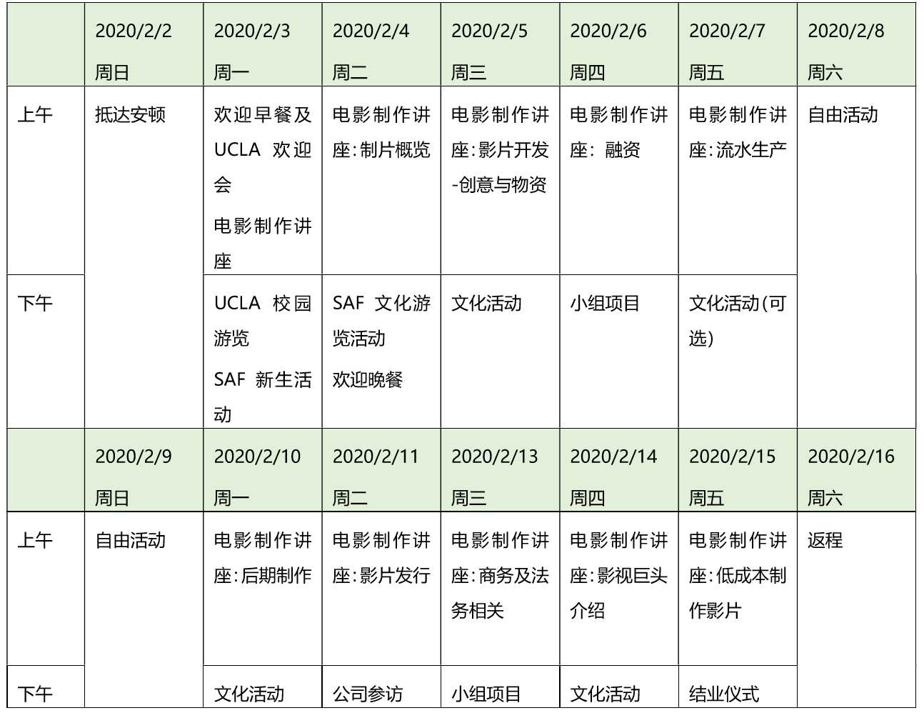 1. 项目时长:2020年2月2日(抵达)-2020年2月15日 (返回)