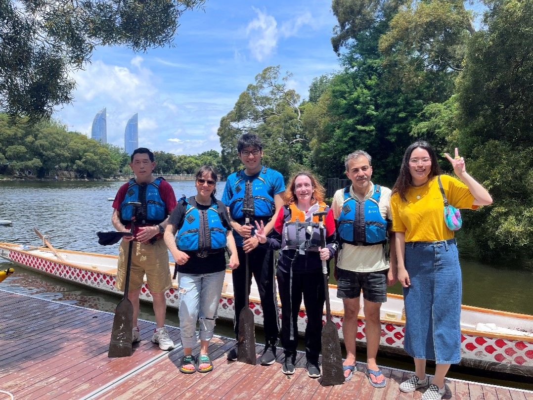 夏风拂,端午至,龙舟起,共安康。5月29日上午,外籍教职工齐聚思源谷,在舟艇协会志愿者们的指导下认真学习掌舵、挥浆和敲鼓。随后龙舟下水,他们乘风逐浪、奋楫击水,外籍教师们激情澎湃的口号,整齐划一的动作拉开此次端午系列体验活动的序幕。