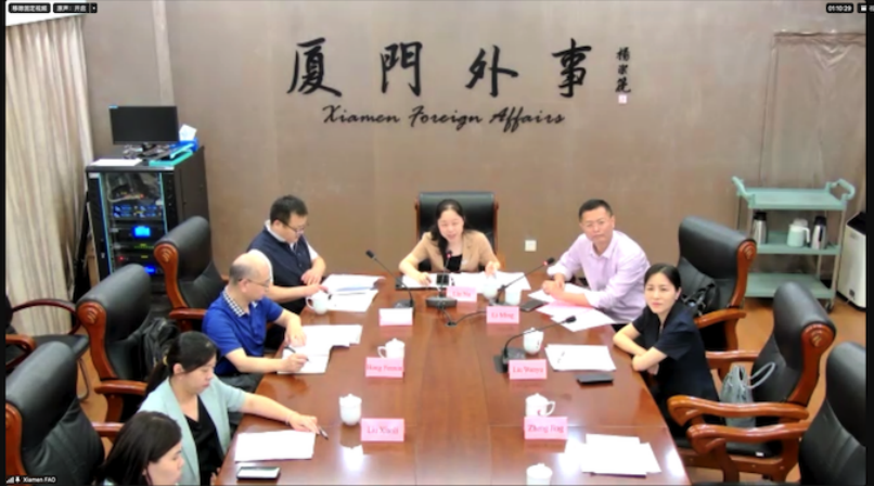 6月22日,中国厦门市与巴西福塔莱萨市“共同推进金砖创新基地建设”主题视频交流会成功举办。我驻巴西累西腓总领事严宇清出席并致辞,王可副总领事、福塔莱萨市外办主任诺格拉、塞阿腊州经济发展与劳动厅代表坎贝罗、市友协专职副会长林娜、火炬高新区管委会委员匡登峰、市金砖办副主任李铭,以及福建省外办、厦门大学、塞阿腊州工业联合会、佩森港综合工业园、福塔莱萨大学等部门代表出席。厦门市外办党组成员、友协专职副会长林娜主持会议。我校国际处副处长刘婉玉、金砖事务专项协调员陈薪羽参加会议,并与巴西福塔雷萨大学代表展开交流。