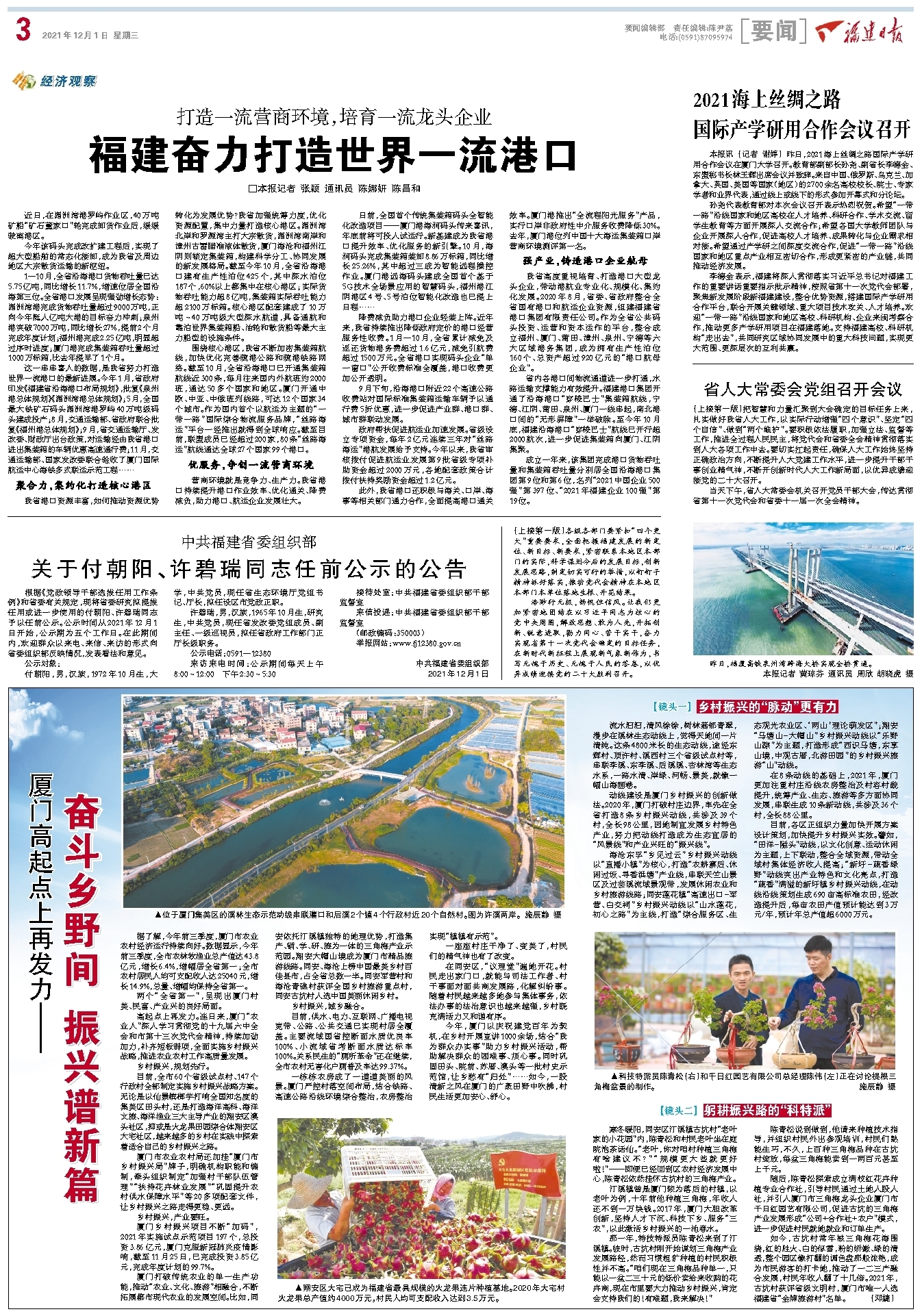 本报讯 (记者 谢婷) 昨日,2021海上丝绸之路国际产学研用合作会议在厦门大学召开。教育部副部长孙尧、副省长李德金、东盟秘书长林玉辉出席会议并致辞。来自中国、俄罗斯、乌克兰、加拿大、英国、美国等国家(地区)的2700余名高校校长、院士、专家学者和业界代表,通过线上或线下的形式参加开幕式和分论坛。