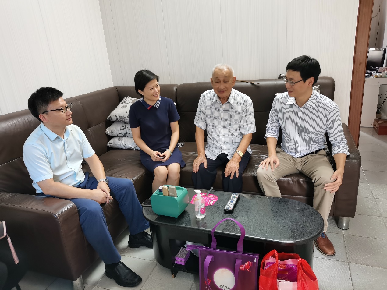 9月28日下午,在中秋、国庆双节来临之际,国际处/台港澳办/海外办学办党支部一行5人走访慰问退休老党员黄金诚同志,送去节日慰问和祝福。