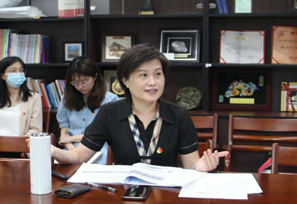 随后,余宏波结合学习习近平总书记致厦门大学建校100周年重要贺信精神及在文化传承发展座谈会上重要讲话的体会,讲授了以“推进共建‘一带一路’教育行动,推动中华文化海外传播”为主题的党课。她从中华文明的重要特征、“一带一路”是中华文明的智慧结晶、教育对外开放助推“一带一路”建设,以及我校赋能“一带一路”建设的举措四个方面,循序渐进,分享了对传承中华文明及通过教育对外开放助推“一带一路”建设的深刻思考。余宏波介绍了中华文明的重要特征,即突出的连续性、创新性、统一性、包容性和和平性,并从“一带一路”提出的历史背景、国际背景、国内背景、内涵等方面阐述“一带一路”是中华文明的智慧结晶。她指出,“民心相通”不仅是“一带一路”建设的重要内容,也是关键基础,而教育对外开放正在成为“民心相通”的重要支点。随后,余宏波介绍了厦门大学赋能“一带一路”建设的举措,牵头成立“21世纪海上丝绸之路”大学联盟、创办马来西亚分校等一系列鲜活生动的案例均体现了厦门大学为中华文化海外传播作出的积极贡献。最后,她指出,增强中华民族凝聚力和向心力是厦门大学的光荣使命,希望支部党员们发挥自身先锋模范作用,坚定文化自信,担当使命、奋发有为,共同创造属于我们这个时代的新文化,建设中华民族现代文明,推动中华文化走向海外。