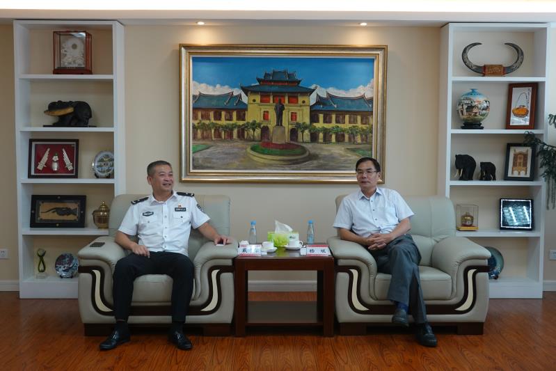7月21日上午,厦门市公安局出入境管理局党委书记、局长戴伟荣一行四人来访我校。校党委常委、副校长杨斌会见来宾。校长助理、国际处处长/台港澳办主任谭绍滨等陪同会见。