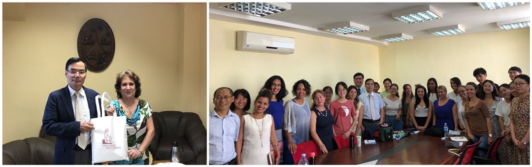 古巴哈瓦那大学副校长Rita Rial对杨斌一行来访表示热烈欢迎,并详细介绍了哈瓦那大学的办学历史、办学理念、学科设置、发展规模、以及对外合作情况等。她表示,作为古巴最古老、规模最大的高等学府,哈瓦那大学高度重视国际化,尤其致力于推动与中国高校的友好往来,非常希望与厦门大学在经济、海洋、生命科学等多学科以及在孔子学院等领域建立全面交流与合作,并愿意对我校西班牙语专业的发展提供必要的支持与协助。杨斌感谢Rita Rial副校长对两校合作的支持,他指出,厦门大学自建校以来就是一所开放包容的大学,始终将坚持国际化与开放办学作为学校的重要发展战略,将进一步加强与古巴等拉美国家各高校的联系,积极推动与哈瓦那大学开展学生联合培养、师生互访、联合研究、以及语言教学互助等合作。此外,双方还就建立西班牙语地区孔子学院联盟等事宜深入交换了意见。会谈结束后,杨斌一行访问了哈瓦那大学孔子学院,出席哈瓦那大学孔子学院成立十周年庆典活动之汉语教学研讨会,并与孔院教师及志愿者座谈。