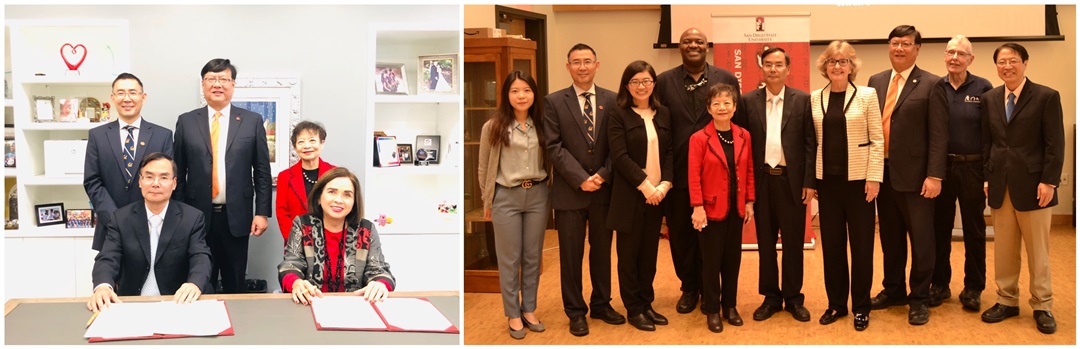 在美国圣地亚哥州立大学,杨斌与该校新任校长Adela de la Torre围绕学生交流、教师互访、学科共建、以及科研合作等事宜达成广泛共识,并共同续签学生交流协议。Adela de la Torre校长表示,厦门大学是圣地亚哥州立大学最为重要的合作高校之一,两校在共建孔院、学生长短期交流项目、教职工互访与研修等领域开展了长期富有成效的合作,圣地亚哥州立大学将继续拓展深化与厦门大学合作的广度与深度,包括与厦门大学马来西亚分校的联系与交流。杨斌赞赏Adela de la Torre校长对两校合作的肯定与支持,他表示,厦门大学高度重视与圣地亚哥州立大学的友好关系,双方以孔子学院为平台不断推进两校合作,拥有广阔的合作前景,希望双方在已有基础上夯实合作成果,加强人员往来与学科交流,包括在中文、西班牙语、影视戏剧、以及艺术设计等多个学科建立紧密联系,丰富两校合作交流的内容与形式,实现共赢发展。随后,杨斌一行应邀参观了圣地亚哥州立大学中国文化中心,与圣地亚哥州立大学荣誉教务长Nancy Marlin等就进一步加强中国文化中心在提升两校合作、培养高层次中文人才、以及促进文化交流互鉴等方面的作用进行了亲切友好的座谈。访问期间,杨斌还向圣地亚哥州立大学影视戏剧学院院长Niyi Coker介绍了厦门成为金鸡百花电影节长期举办地以及我校筹建电影学院的有关情况,并邀请Niyi Coker院长率团到厦门考察并推进交流与合作。