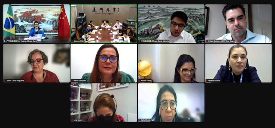6月22日,中国厦门市与巴西福塔莱萨市“共同推进金砖创新基地建设”主题视频交流会成功举办。我驻巴西累西腓总领事严宇清出席并致辞,王可副总领事、福塔莱萨市外办主任诺格拉、塞阿腊州经济发展与劳动厅代表坎贝罗、市友协专职副会长林娜、火炬高新区管委会委员匡登峰、市金砖办副主任李铭,以及福建省外办、厦门大学、塞阿腊州工业联合会、佩森港综合工业园、福塔莱萨大学等部门代表出席。厦门市外办党组成员、友协专职副会长林娜主持会议。我校国际处副处长刘婉玉、金砖事务专项协调员陈薪羽参加会议,并与巴西福塔雷萨大学代表展开交流。