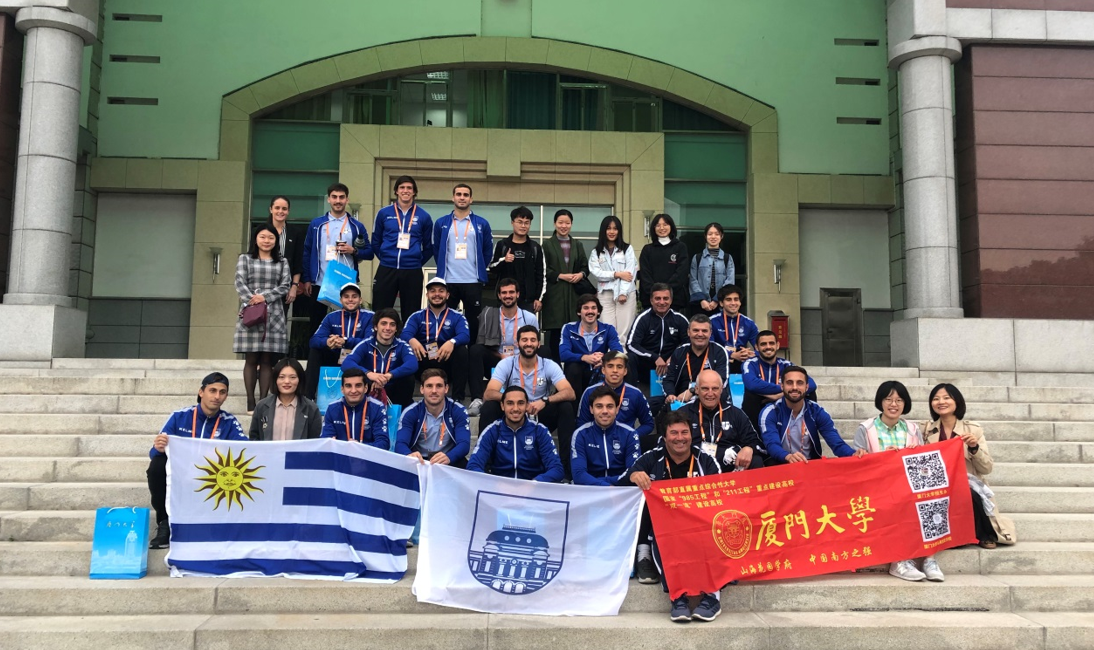 国际处项目官员林腾驹代表国际处对乌拉圭共和国大学足球代表团来访表示欢迎。招生办国际招生办公室李玉婷向代表团介绍了厦门大学招生办公室的具体职能、师资力量、学科设置和奖学金设置情况。体育教学部副主任吴飞腾从师资队伍、体育教学、群体竞赛、运动队建设、学科建设及科研工作、场馆建设这六个方面介绍了体育部的基本情况。西班牙语系负责人张雅惠介绍了西班牙语系的基本情况。随后,西班牙语系师生跟代表团进行了进一步交流。